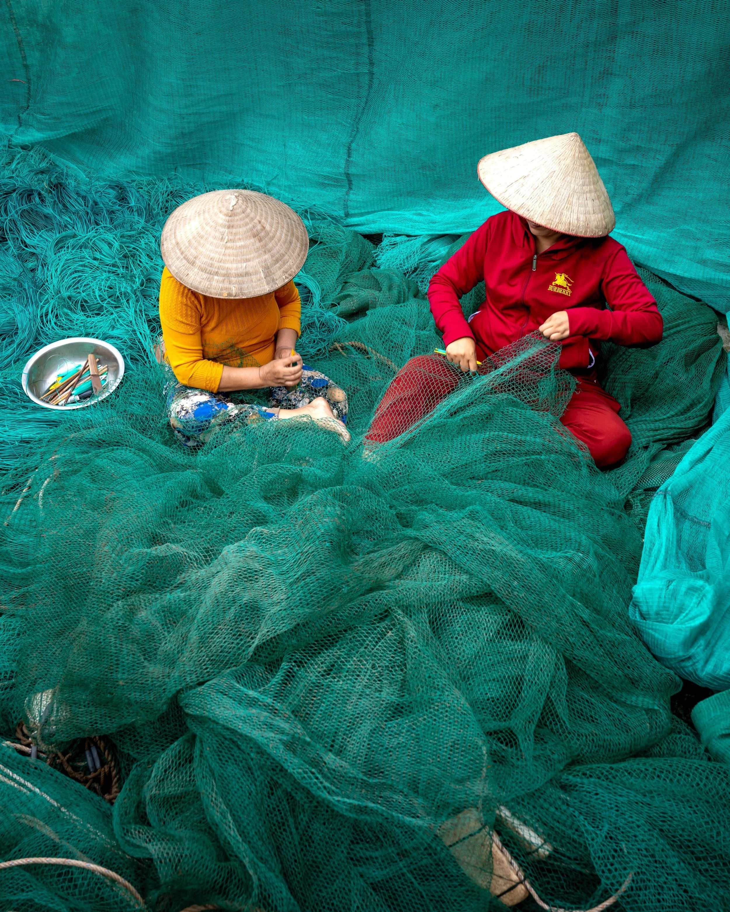 Photo above shows a large modern fishing net, which is usually made of artificial polyamides such as nylon.